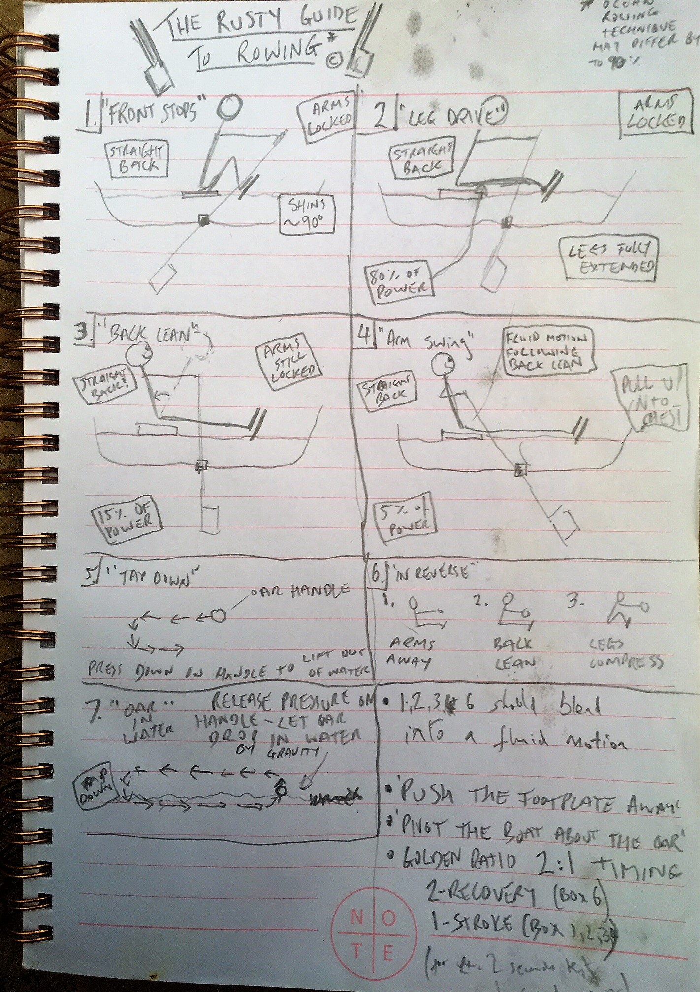 This continues for weeks and I gladly accept all training and advice from the crew that may help me improve, including this “The Rusty Guide To Rowing” thanks James.